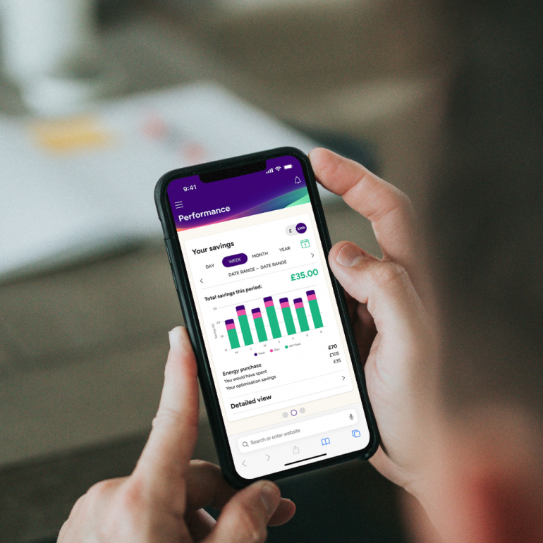Integrated battery and smart controller system optimises the energy use - charging during cheaper off-peak periods and supplying power when rates are highest.